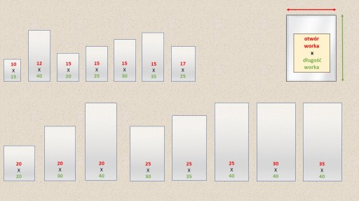 Istnieje możliwość zamówienia każdego wymiaru worka na życzenie klienta.