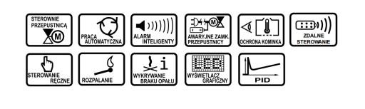 - Tryby pracy: automatyczny, ręczny, rozpalanie,