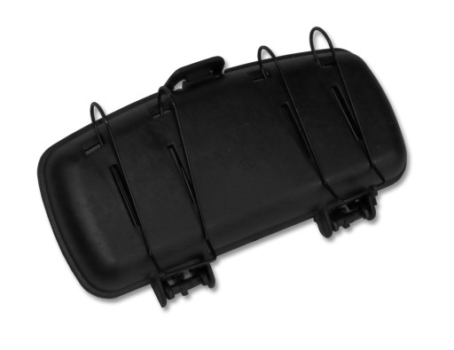 Etui mocowane za pomocą sprężystych klamerek do osłony przeciwsłonecznej. Twarda powierzchnia zewnętrzna i delikatne wykończone wnętrze skutecznie chronią okulary przed uszkodzeniem. Zatrzaskowy zamek umożliwia łatwą obsługę.