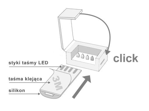 - Zastosowanie: Złączka CLICK podwójna do taśm LED RGB 10mm IP + przewód