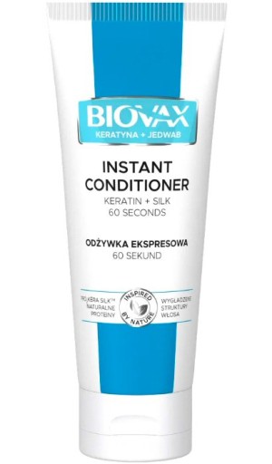 BIOVAX Odżywka Ekspresowa 7w1 Beauty Benefit z serii Keratyna + Jedwab, dzięki zawartości zespołu naturalnych białek Pro2Kera Silk już po upływie 60 sekund zapewnia 7 korzyści dla Twoich włosów.