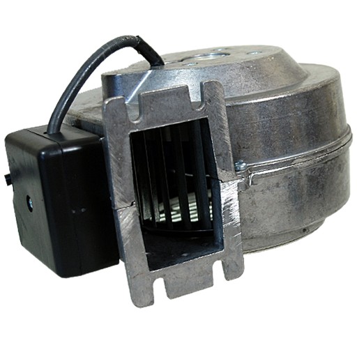 Dmuchawa z małą ramką przyłączeniową do pieca z podajnikiem z przesłoną na wlocie.
