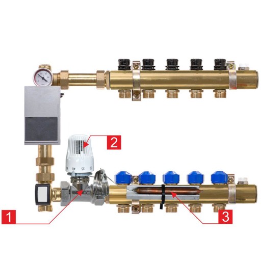 Zawór termostatyczny 3/4 cala z głowicą z oddaloną kapilarą do ogrzewania podłogowego.