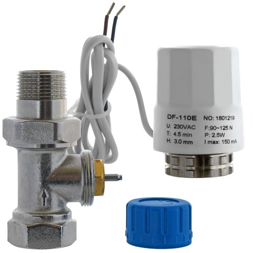 Zestaw zawiera zawór termostatyczny 3/4", kapturek ochronny oraz głowicę termostatyczną z oddalonym króćcem (2m)