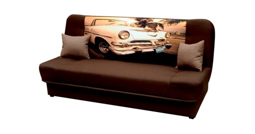 Kanapa jest wykonana w materiale Sawana 24 + motyw Paryż Retro