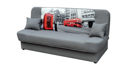 Kanapa jest wykonana w materiale Sawana 80 + motyw Londyn Retro