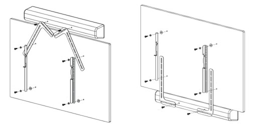 Uchwyty pasują do Soundbar'ów, które posiadają otwory montażowe w tylnej obudowie.