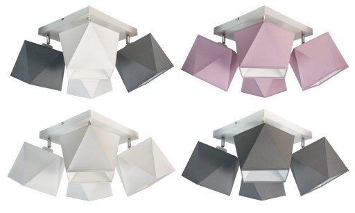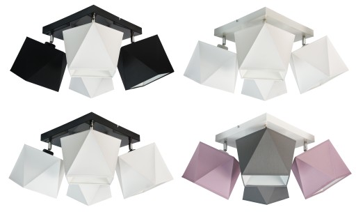 Prezentujemy Państwu plafonierę sufitową DIAMENT 4 płomienną kwadrat o podstawie 30x30cm z czterema ruchomymi punktami świetlnymi. Abażury widoczne na zdjęciach to połączenie tkaniny z tworzywem.