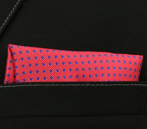 Elegancka, Męska Poszetka - ALTIES - Czerwona w Niebieski Groszek