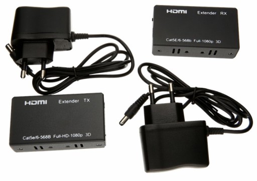 Extender / Przedłużacz pozwala na przesył sygnału HDMI w rozdzielczości 3D za pomocą 1 pary kabli UTP 5 lub 6 kategorii na odległość do 60 m.