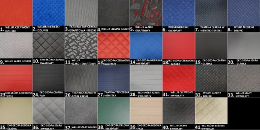-boczne elementy szyte z weluru grafit lub szary albo z tkaniny tapicerskiej czarnej lub szarej
