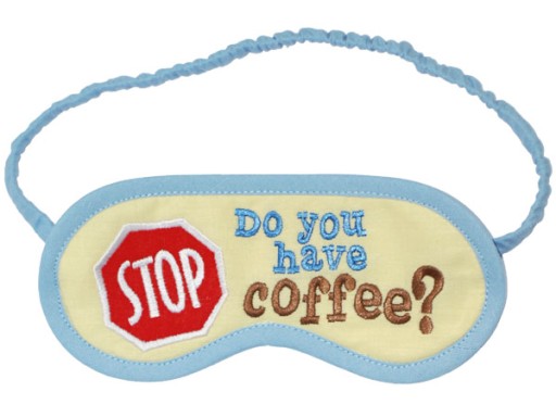 OPASKA NA OCZY z tekstem "STOP Do you have coffee?" (co oznacza "STOP Czy masz kawę?"), MASKA DO SPANIA, PREZENT LUB PRZEBRANIE!
