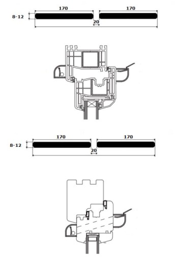 Na rysunku pierwszym pokazany jest montaż nawiewnika w oknie PCV. Pokazany jest również przekrój otworów przelotowych, wraz z jego średnicą, długością oraz odstępem między otworami.
