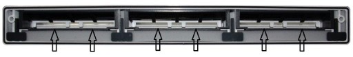 Poniższe zdjęcie przedstawia nawiewnik VT 301 od strony wewnętrznej (od tyłu). Strzałkami pokazane są 3 niezależne automaty ciśnieniowe.