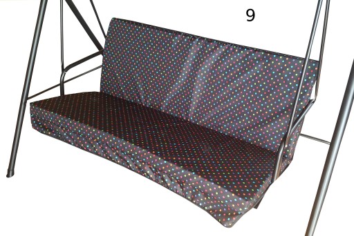 Na brzegach i po środku od spodu doszyte troczki - tasiemki, którymi można zamocować materac do listewek huśtawki lub ławki.