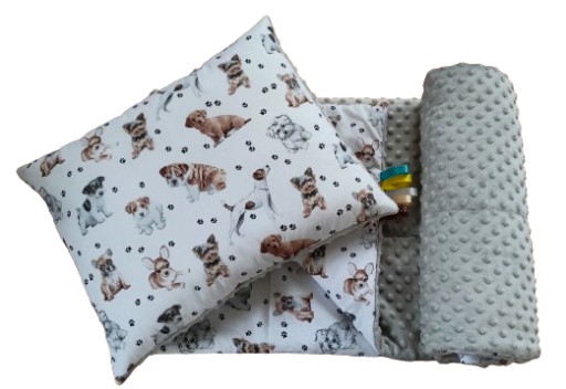 - Komplet szyjemy z wysokogatunkowej dzianiny Minky 380 g/m2 posiadającej Certyfikat "Bezpieczny dla dziecka", potwierdzony badaniami laboratoryjnymi. Dzianina Minky kropki wykonana z mikrowłókien jest bardzo miła i delikatna. Dzieci uwielbiają się do niej tulić. Druga strona kompletu to 100% bawełna polskich producentów.