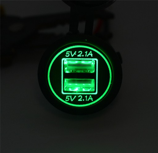 WODOODPORNA ŁADOWARKA USB 5V 4.2A Z PODŚWIETLENIEM ZIELONYM