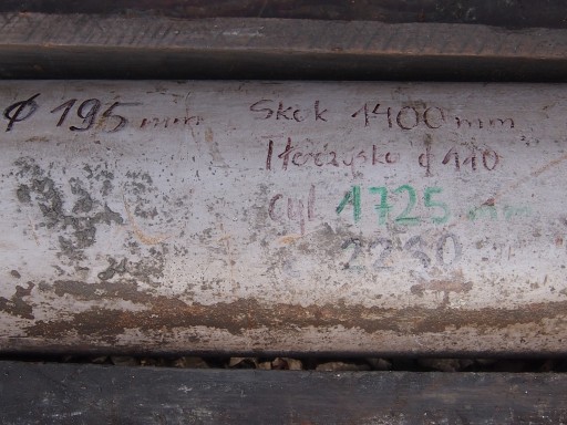 Siłownik hydrauliczny,dwustronnego działania,produkcja polska.Długość całkowita złożonego 2260 mm.Skok 1400 mm.Średnica zewnętrzna 195 mm,tłoczysko 110 mm.Ciśnienie pracy do 160 atmosfer.
