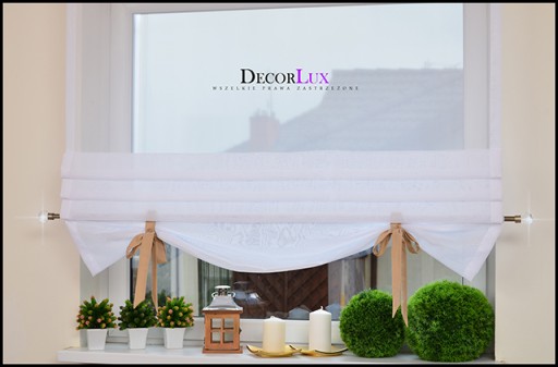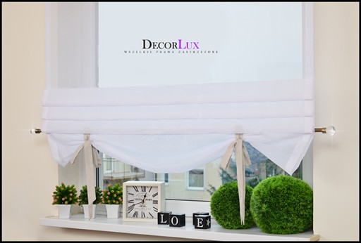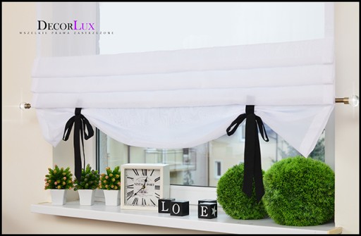 Roleta w kolorze bieli z kolorowymi podwiązaniami do wyboru. Sposób zawieszenia tunel lub żabki wymiary szer. 80cm, wys. 130cm (po podwiązaniu) oczywiście możemy uszyć na inne wymiary. Usztywniacz to eksponat do zdjęć możemy go zrobić i dopasować do rolety za dodatkową dopłatą. Zapraszamy na pozostałe aukcje oraz na stronę.
