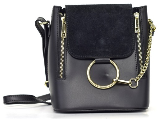 Włoska torebka wykonana z najwyższej jakości sztywnej, licowej , grubej skóry naturalnej ( klapka - zamsz naturalny ).