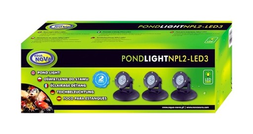 Zespół TRZECH REFLEKTORÓW LED 3x2,2W australijskiej firmy AQUA NOVA przeznaczony do stosowania w oczkach wodnych, fontannach, kaskadach, stawach ogrodowych, basenach oraz przydomowych ogrodach, do oświetlenia dekoracyjnych fragmentów pod wodą albo na powierzchni zarówno na wolnym powietrzu jak i w pomieszczeniach.