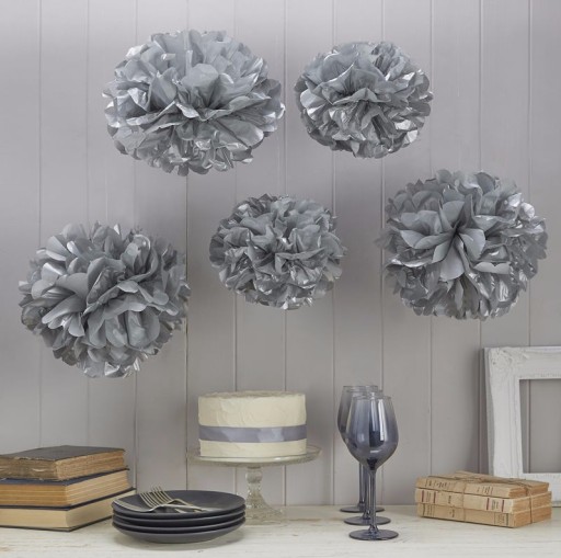 POMPONY Z BIBUŁY papierowe 10 cm srebrny szary