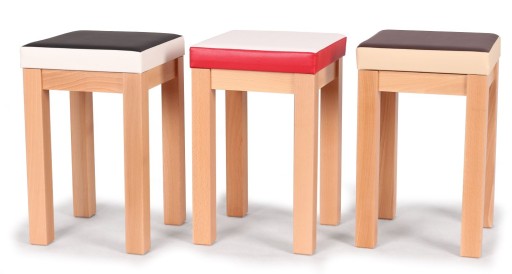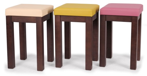 TABORETY STELMACH wykonywane są w wielu modelach i wariantach kolorystycznych. Na niniejszej aukcji prezentujemy Państwu klasyczny taboret z litego drewna bukowego z miękkim siedziskiem z eco skóry.