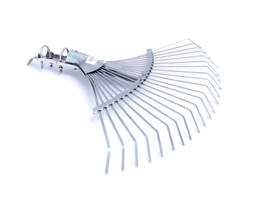 Grabie z płaskiego drutu sprężynowego, bez trzonka. Pasują do standardowego trzona o średnicy 28mm. Grabie składane i regulowane. Wzmocniona konstrukcja.