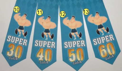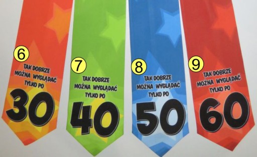 mocowane na gumkę. Kolory krawatów i nadruków takie jak widoczne na zdjęciach.