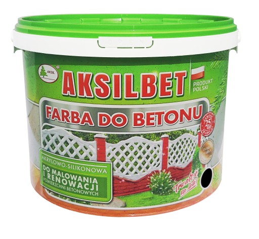 Farba do betonu AKSILBET jest akrylowo-silikonową, wodorozcieńczalną farbą do malowania betonu i ogrodzeń betonowych opartą na nowoczesnych surowcach gwarantujących najwyższą jakość.