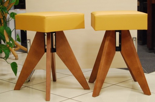 TABORETY STELMACH wykonywane są w wielu modelach i wariantach kolorystycznych. Na niniejszej aukcji prezentujemy Państwu taboret lakierowany z litego drewna bukowego z miękkim siedziskiem z eco skóry.