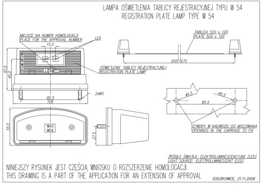 ФОНАРЬ НОМЕРНОГО ЗНАКА WAŚ W54