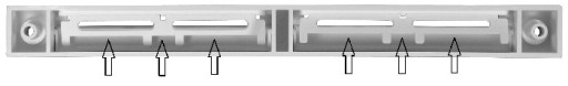 Poniższe zdjęcie przedstawia nawiewnik VT 201 od strony wewnętrznej (od tyłu). Strzałkami pokazane są 2 niezależne automaty ciśnieniowe.