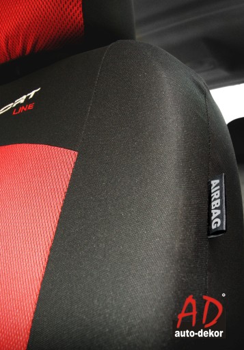 W pokrowcach SPORT LINE zastosowane zostały regulowane rzepy w przednich fotelach, dzięki czemu nie ma potrzeby wykonywania otworów na zagłówki. Przez różnorodność konfiguracji kanap tylnych otwory na zagłówki tylne należy zrobić samodzielnie.