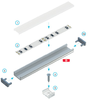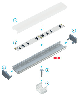 ✔ konstrukcja profilu w kształcie litery "D" sprzyja efektywnemu rozpraszaniu ciepła, co korzystnie wpływa na żywotność i wydajność taśm LED