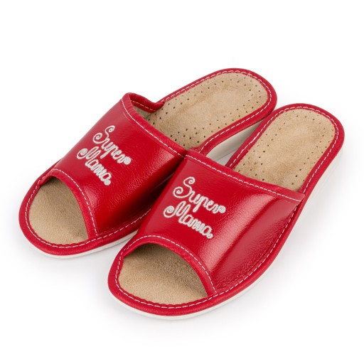 Damskie klapki ze skórzaną wkładką, SUPER MAMA