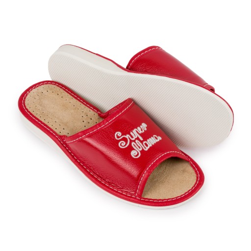 Damskie klapki ze skórzaną wkładką, SUPER MAMA