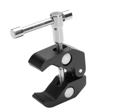 Prezentujemy uniwersalny, wielofunkcyjny uchwyt typu crab clamp. Uchwyt mocujemy na gwintowanej końcówce statywowej (1/4 lub 3/8 cala) i umieszczamy w nim poprzeczną rurę.