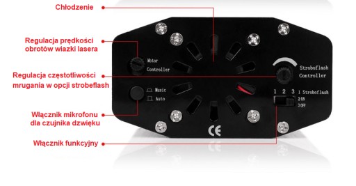 Laser - Projektor disco z funkcją stroboskopu oraz czujnikiem dzwięku