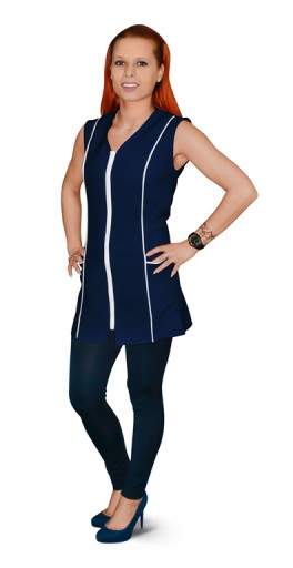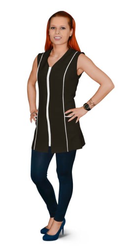Fartuch ma dekolt z wycięciem w serek, dzięki czemu świetnie się układa.