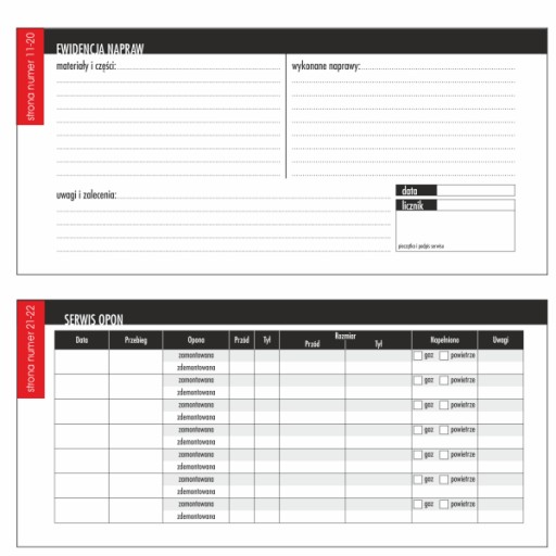 PODGLĄDOWY WYGLĄD ŚRODKA KSIĄŻKI SERWISOWEJ