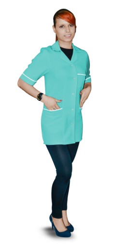 Fartuch damski Marta został stworzony specjalnie dla kobiet pracujących w służbie zdrowia- w przychodniach, szpitalach czy aptekach.