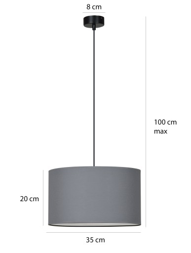 - Abażur jest szeroki na 35 cm i wysoki na 20 cm