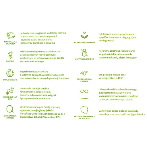 - Posiada Certyfikat Tekstylia Godne Zaufania certyfikowane wg Oeko-Tex Standard 100 kl. I – bezpieczne dla niemowląt i dzieci do lat 3