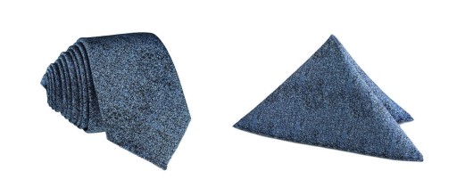 Krawat i poszetka są z takiego samego materiału i w tym samym kolorze.