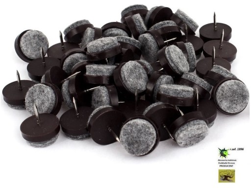 Podkładki filcowe wbijane pod meble okrągłe o średnicy 24mm, podkładka gwoździowa z tworzywa w kolorze brązowym. Filc meblowy znakomicie zabezpiecza powierzchnię podłogi przed zarysowaniami. Podkładki z filcu mocowane są pod meble, szafy, krzesła, stoły,ławy, stoliki. Filc gruby, zwarty o odpowiedniej gęstości. Sprzedajemy bardzo duże ilości podkładek - polecamy ten produkt.