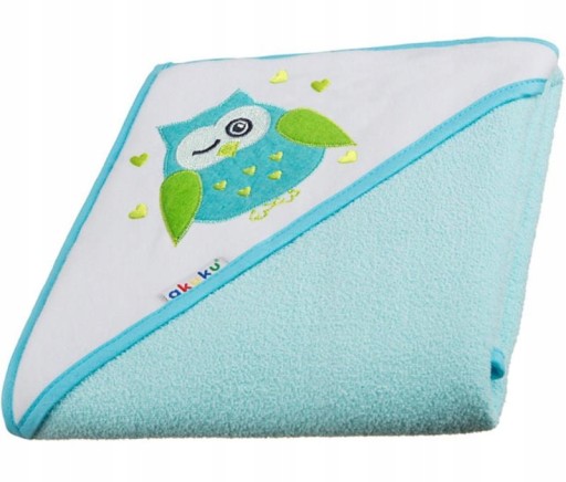 Okrycie kąpielowe Akuku daje miłe uczucie ciepła po kąpieli, zdobione wysokiej jakości haftem na kapturku. Kapturek pozwala na okrycie wilgotnej główki dziecka. Wykonane z bardzo miękkiej i przyjemnej frotty, która świetnie chłonie wodę i nadaje się dla delikatnej skóry każdego dziecka, nie powoduje podrażnień.