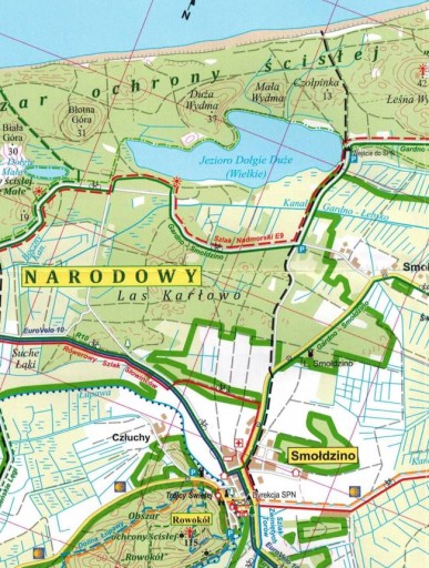 - znakowane szlaki turystyczne, rowerowe i kajakowe.