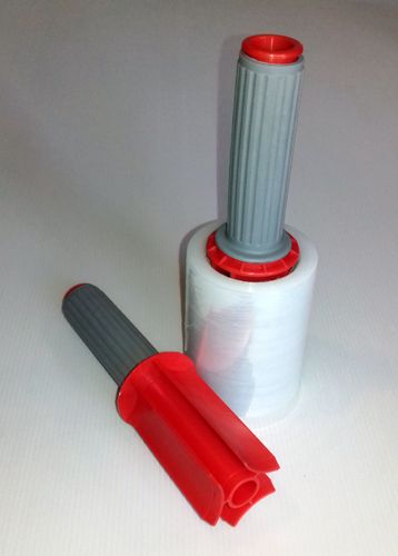 Uchwyt do rolki folii stretch typu MINI WRAP ułatwiający foliowanie. Uchwyt umieszcza się w tulei na którą nawinięty jest stretch. Elementy dyspensera obracają się na łożyskach ślizgowych, dzięki temu praca z rolką jest łatwa i nie ma wpływu na kondycję rąk osoby owijającej czy rękawic ochronnych.