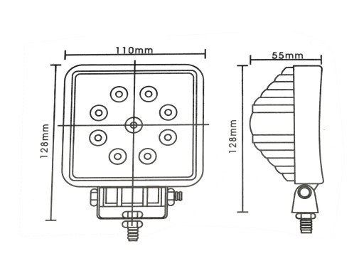 Wodoodporna, pyłoszczelna oraz wstrząsoodporna(IP 67). Strumień światła generowany przez lampę jest rozproszony przez co lampa świeci blisko ale bardzo szerokim promieniem. Lampa jest idealna jako doświetlenie przestrzeni roboczej. Tolerancja napięcia zasilania (9~60V) pozwala na montaż lampy w większości pojazdów.